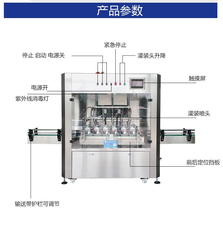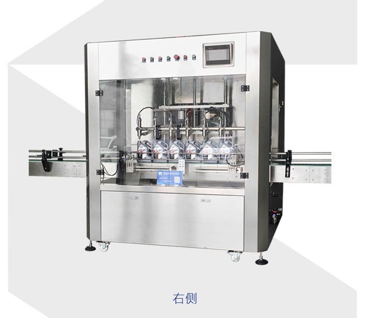 該六頭柱塞式全自動(dòng)潤(rùn)滑油灌裝機(jī)特的灌裝頭設(shè)計(jì)及真空回吸系統(tǒng),確保灌裝過(guò)程無(wú)殘油滴漏,快慢雙速灌裝,灌裝速度可調(diào),杜絕溢瓶現(xiàn)象。該機(jī)采用動(dòng)力灌裝,無(wú)需配裝高位罐,簡(jiǎn)化了安裝工序,提高了灌裝效率。履帶式壓蓋機(jī),穩(wěn)定無(wú)噪音,無(wú)空壓現(xiàn)象。觸摸屏界面友好,操作簡(jiǎn)捷,SIEMENS PLC控制系統(tǒng),運(yùn)算速度快,性能穩(wěn)定,品質(zhì)卓越。電、氣件均采用精品元件,確保整機(jī)運(yùn)作穩(wěn)定。