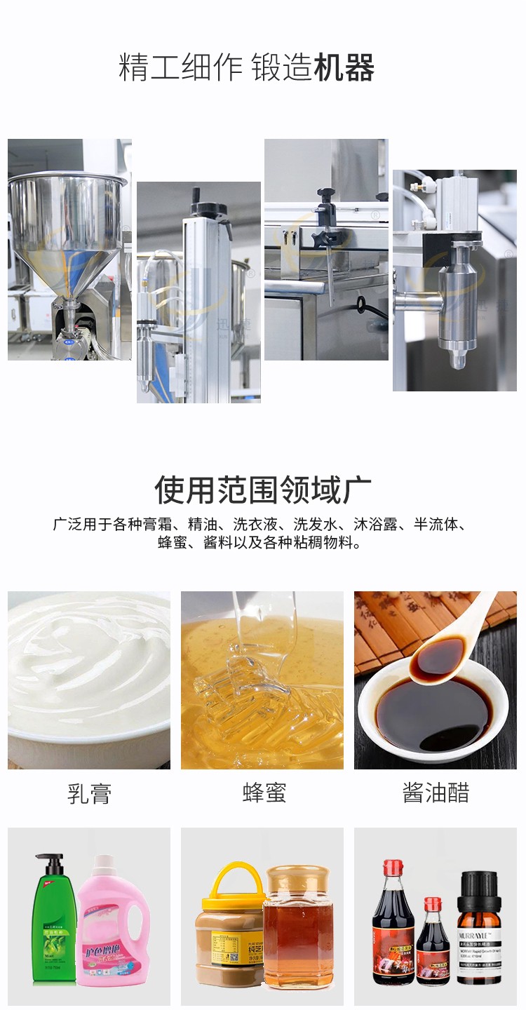 單頭膏體灌裝機適用范圍:廣泛用于化妝品、食品、醫(yī)藥、化工原料等行業(yè)。各種膏霜、精油、洗衣液、洗發(fā)水、沐浴露、半流體