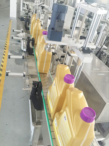 潤滑油灌裝旋蓋一體機(jī)為活塞式計(jì)量方式。計(jì)量范圍為1升-5升,離合式旋蓋結(jié)構(gòu),確保旋蓋合格率高,不傷蓋。本設(shè)備為灌裝旋蓋一體機(jī)
