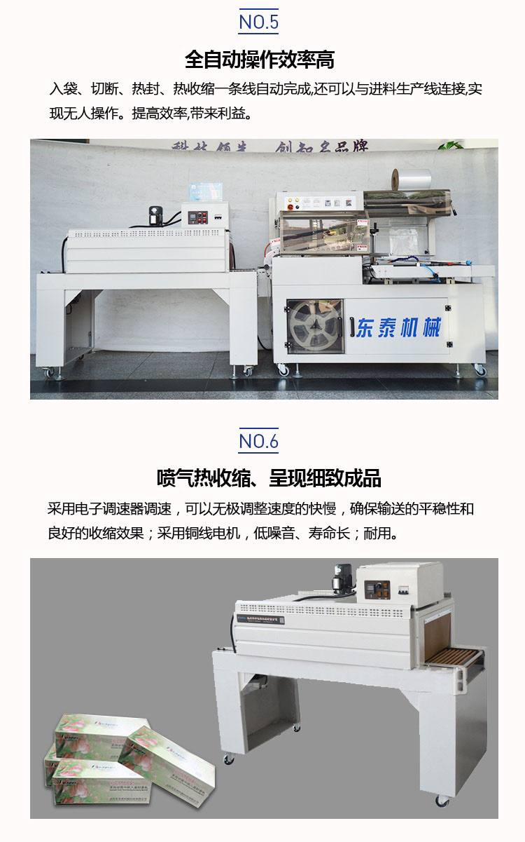 自動(dòng)塑料膜熱收縮包裝機(jī)結(jié)構(gòu)緊湊占地面積小,非常適合配套自動(dòng)包裝流水線完成產(chǎn)品的自動(dòng)無人化包裝,適合于單個(gè)物品包裝或有底托物品包裝。