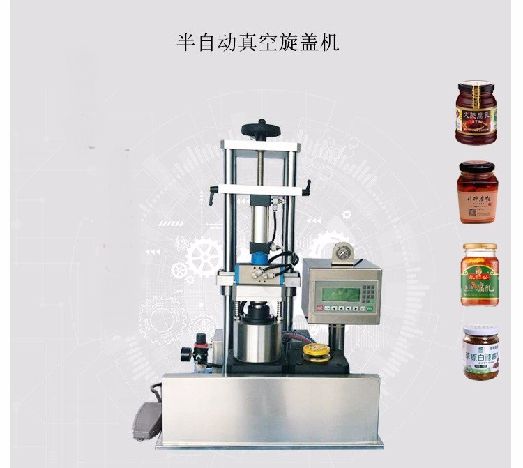 半自動辣椒醬真空旋蓋機(jī)顧名思義是旋蓋真空一體機(jī),集抽真空旋蓋于一體。